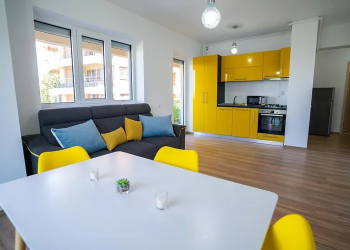 The beachfront 1-bedroom Mamaia Apartament Turcoaz Vedere Lac provides swift access to various city landmarks, such as Castel Summer Club, located only 5 minutes' walk away. Set approximately 500 metres from Tomis Beach, this spacious apartment with a terrace overlooks the lake.